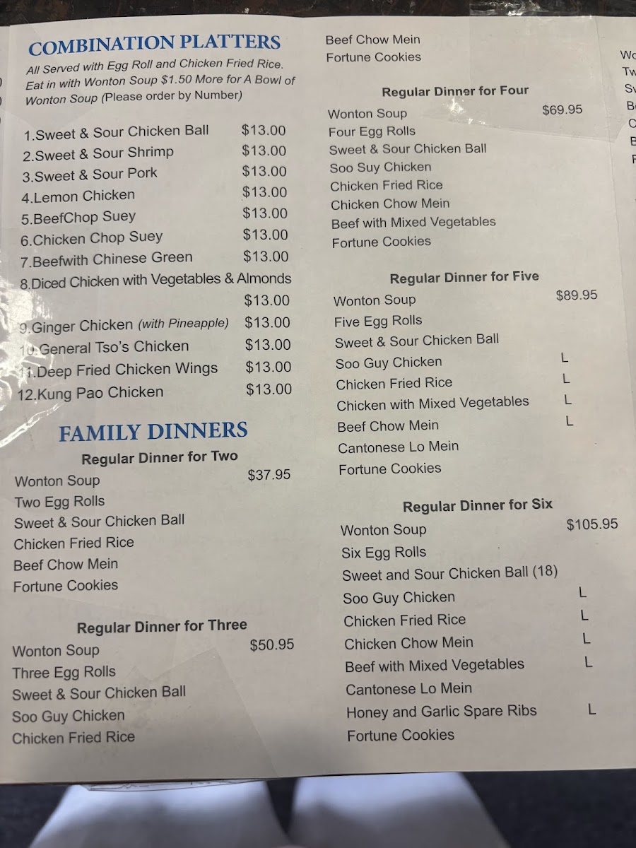 For a satisfying meal, the Combination Platters provide a mix of dishes, including options like Sweet & Sour Chicken Ball with Chicken Wings and Stir Shanghai Noodles. These platters are perfect for those who want to sample multiple flavors at once.